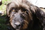 Ah, Chela (for Marcela) is a fantastic mixed between a giant schnauzer and probably a Gos d´atura (Catalan Sheepdog)... she never tells. She´s the sweetest dog yes, just like her eyes. She loves water more than I do. She can spend hours searching for stones (which you must throw to the lake of course, over and over and over again) in ice water.