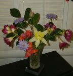 Donal - You'd asked for pictures of my gardens once the flowers started blooming, and I haven't gotten any, yet, but I did take a picture of my first "bouquet" of spring flowers from the garden. This one has snapdragons, scabiosa, a columbine, freesias, (gawd, they smell sooooo good) and a rose.