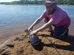 The perspective doesn't do it justice because it is laid out facing the camera. Note my hands are shoulder width apart, the monster's tail extends into the river and it's head was bigger around than my thigh. That's a bona fide citation channel cat, easily 30" long and well over 12 pounds.